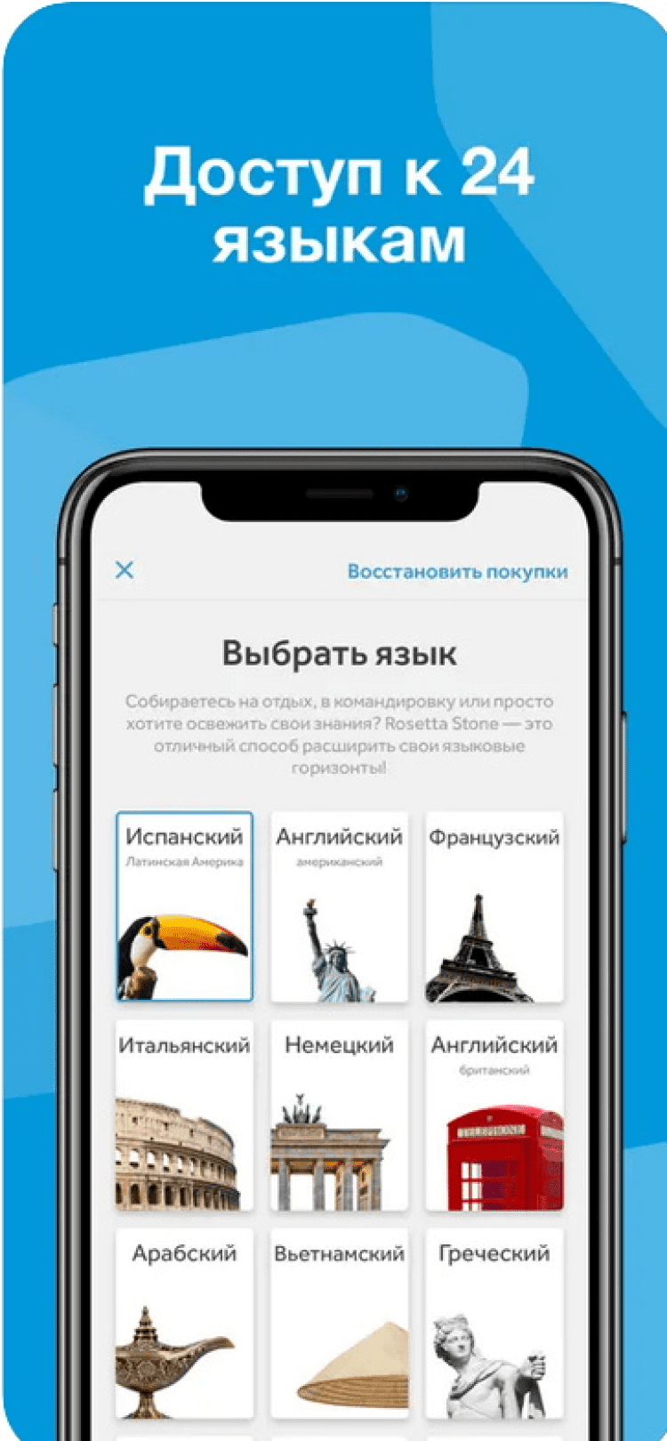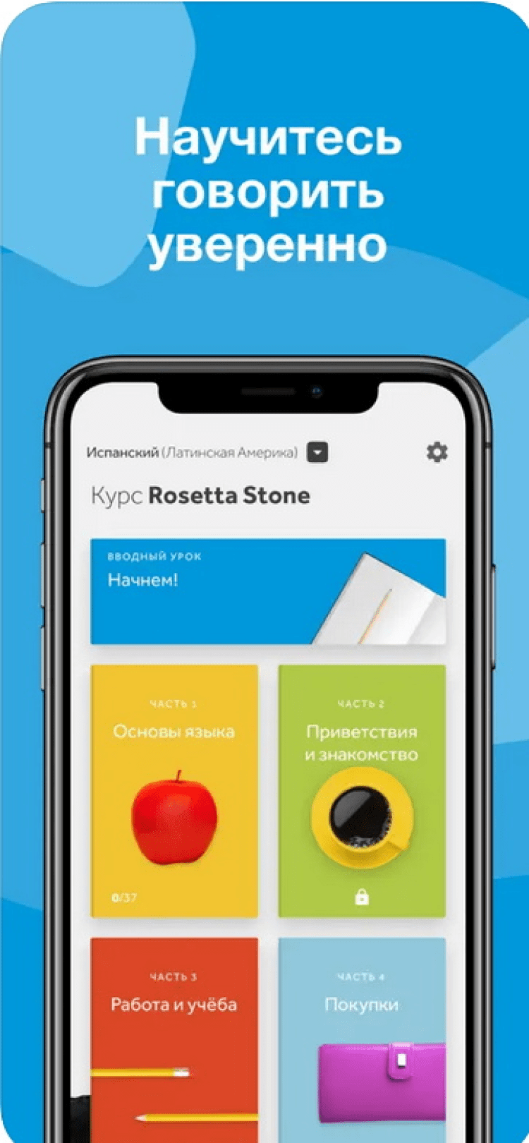 Rosetta Stone - приложение для iPhone и iPad, созданное специально для тех, кто хочет выучить/изучает иностранные языки. Используя данное приложение вы сможете не только выучить новые слов, но и поработать над своим произношением, чтобы избавиться от акцента, научитесь вести и поддерживать беседы на разные темы, и в целом лучше понимать язык и его носителей.