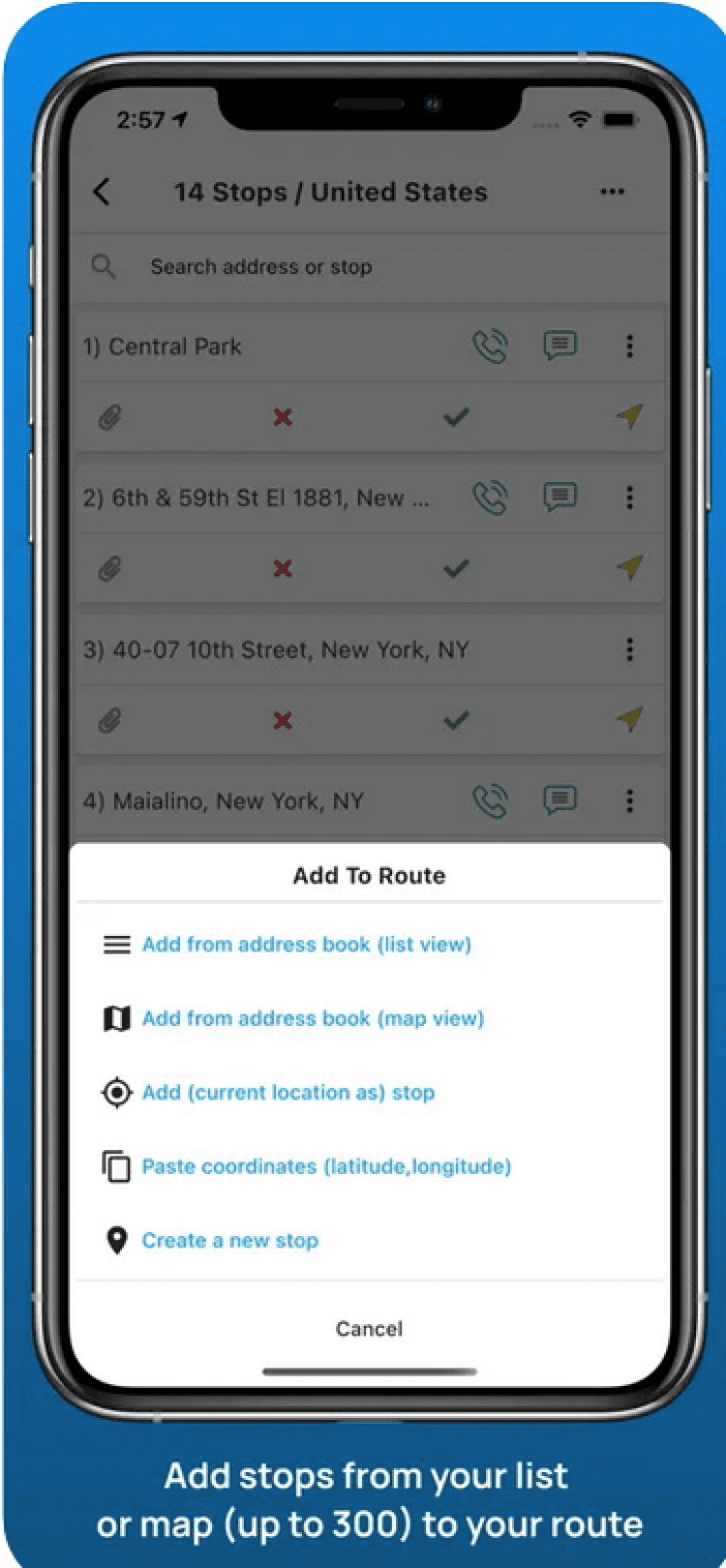 - можно добавить до 300 остановок в пути;