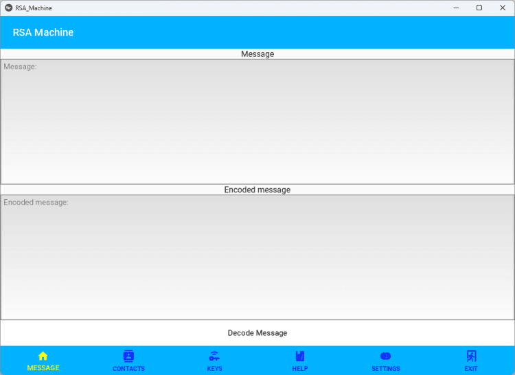 RSA-Machine — программа для шифрования/дешифрования текстовых сообщений c помощью алгоритма RSA. Общайтесь свободно! RSA-Machine поможет сохранить ваши личные и корпоративные секреты.