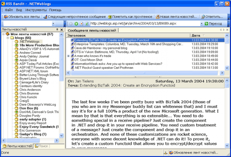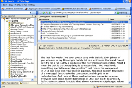 RSS Bandit - это удобная программа, предназначенная для чтения новостных лент.