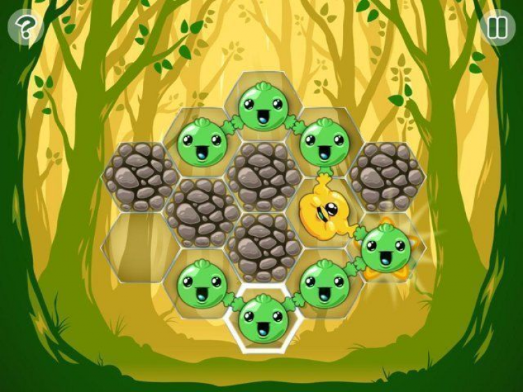Периодически на игровом поле будут появляться лунки с сердечками внутри. Это так называемые зоны комфорта, в которых любой из персонажей будет счастлив и доволен жизнью. Вам всего лишь нужно поместить его туда. Будь у Горошка хоть десять рук, он будет весел, даже если все руки будут свободны. Также старайтесь помещать персонажей в лунки со звездами. Собирая звезды, вы собираете свои награды. Однако обходите стороной Грустняшек-одиночек. Они просто не терпят соседства и могут помешать вам справиться с поставленной задачей. Все в ваших руках!