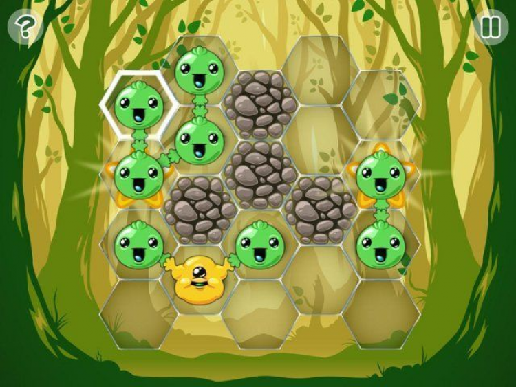 На первых этапах с этой задачей вы легко справитесь. Но вот когда на игровом поле начнут появляться не только однорукие и двурукие Горошки, но и трехрукие, и пятирукие, то тут уж действительно придется поломать голову. Не обязательно пытаться создать непрерывную цепь из персонажей игры. Это могут быть и две замкнутых цепочки. Главное, чтобы все держались за руки и были счастливы. Да-да, именно счастливы. Ведь если у Горошка хоть одна рука свободна, его лицо просто искажает невыразимая печаль.