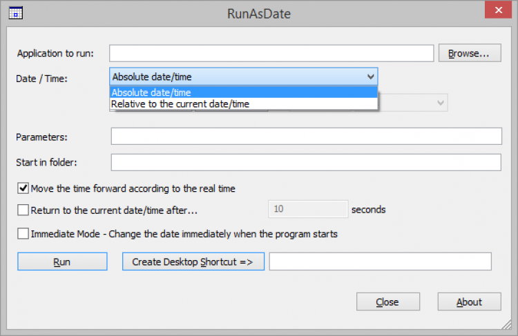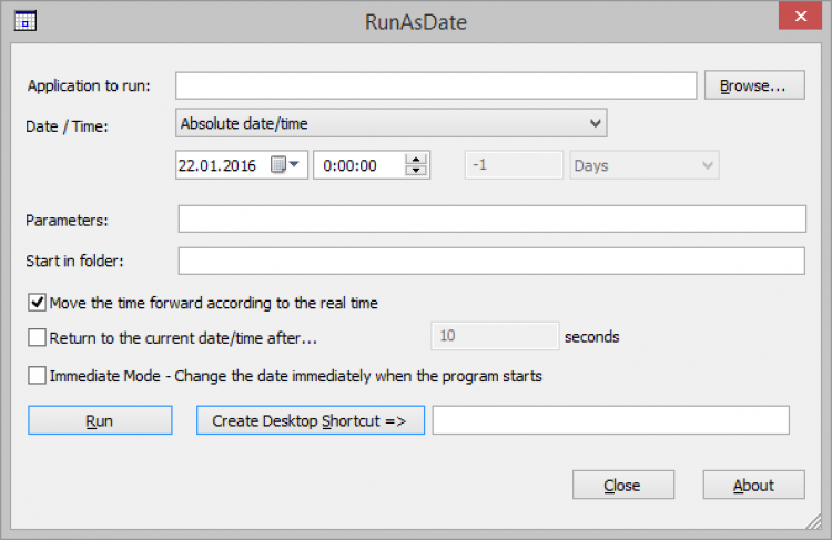 При этом, она позволяет запускать сразу несколько программ с разными датой и временем параллельно. Запуск программ с измененными датой/временем может быть использован для разных, легальных, целей. RunAsDate предназначена именно для таких случаев, и никак не для обхода триальных версий программ.