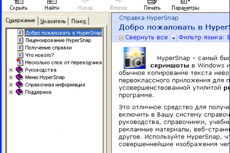 Программа HyperSnap предназначена для выполнения снимков экрана (скриншотов) и обладает многими специализированными функциями, среди которых - захват видео и игр, захват окон с автопрокруткой, захват текста из элементов интерфейса. Программа имеет полностью настраиваемый интерфейс, вплоть до отстегивания панелей инструментов и даже меню, и превращения их в плавающие. Большим подспорьем является также возможность автоматизации многих рутинных операций.