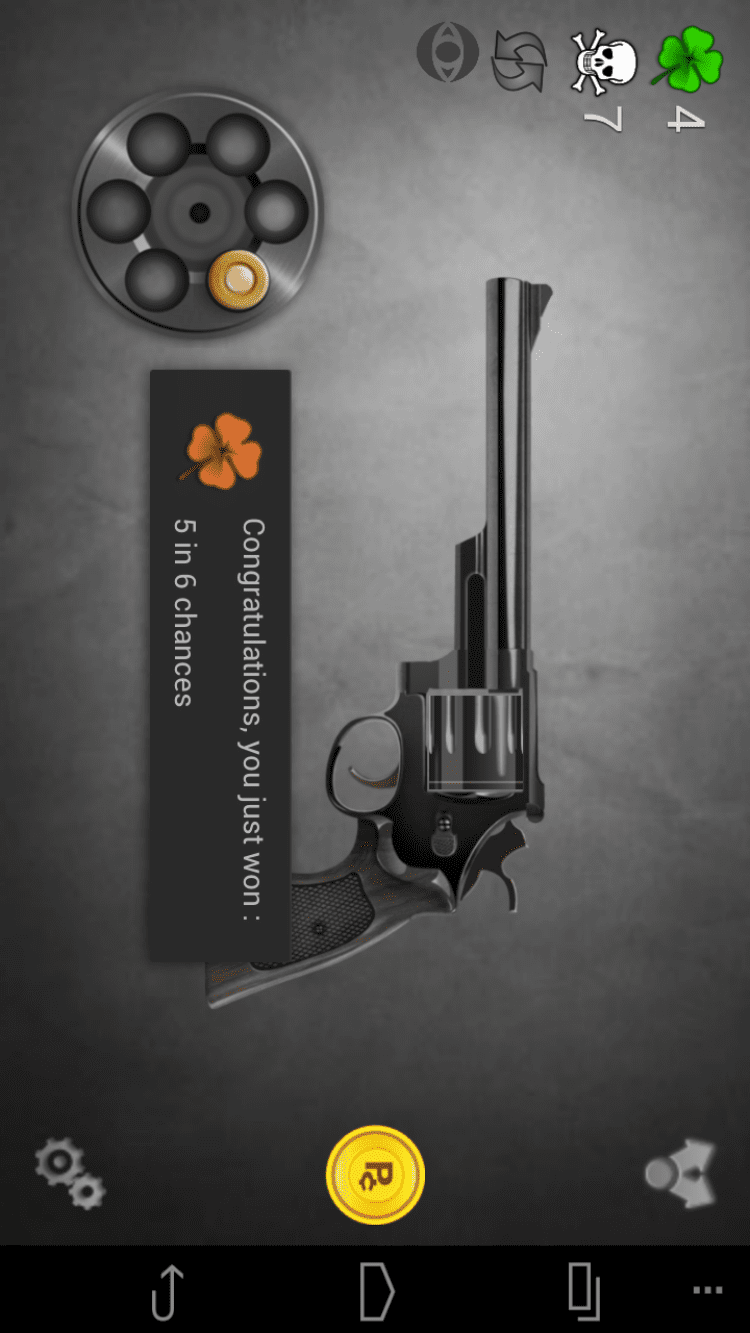 Russian Roulette Русская рулетка для Android. Вы можете играть в одиночку или с друзьями. Последний "выживший" - побеждает.