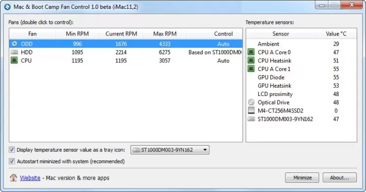 В программе есть опция, которая позволяет ей показывает текущую температуру и скорость кулеров на иконке в системном трее Windows, что позволяет всегда следить за "климатом" внутри компьютера.