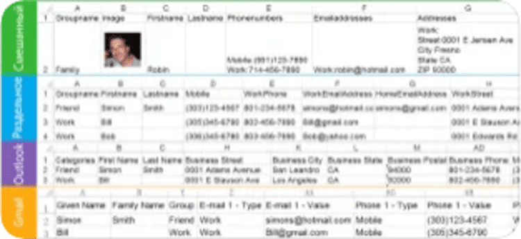 Также, программа позволяет распечатывать контакты прямо с iPhone, экспортировать их в в формате xls в Outlook и обратно, а в формате csv - в Gmail.