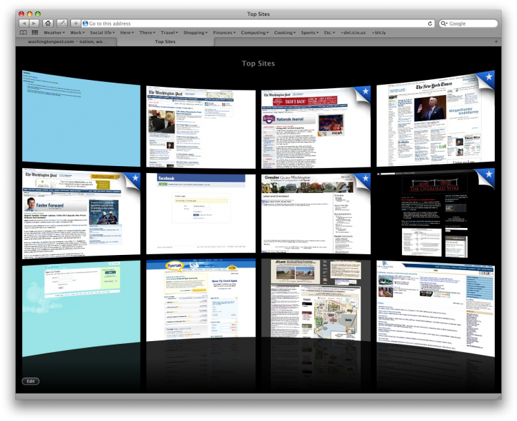 - Top Sites — позволяет просматривать список самых посещаемых веб-сайтов в виде миниатюрных страниц;