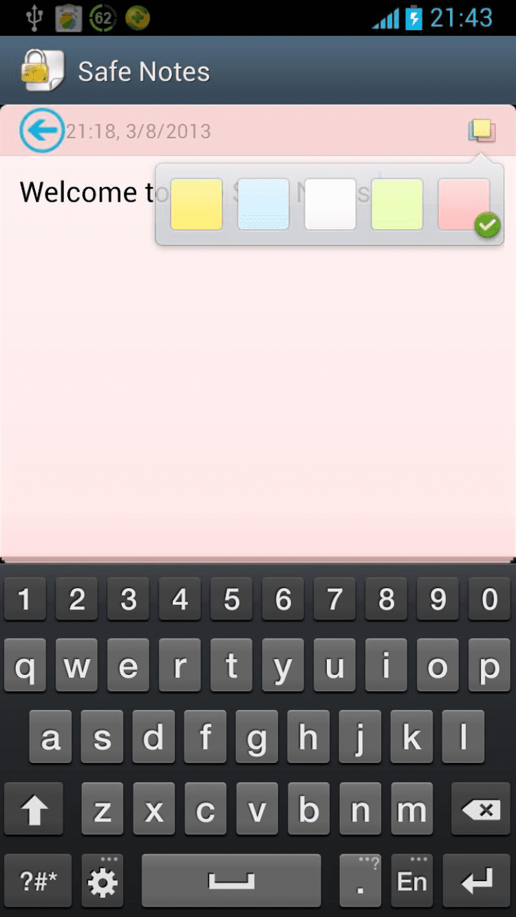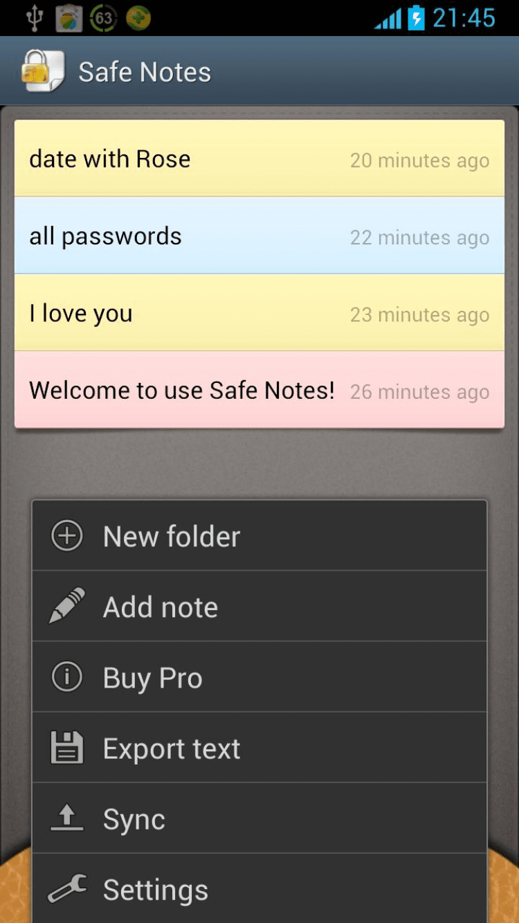 Safe Notes В этой программе вы сможете вести личные записки не боясь, что кто-то сможет их прочитать. Открыв это приложение в первый раз, вы сможете задать пароль для доступа к содержимому блокнота. Пароль может быть текстовым или узорным. Добавляйте к своим записям ссылку на страницу в интернете, номера телефонов, устанавливайте цветные фоны к своим записям и синхронизируйте их с Google Task.