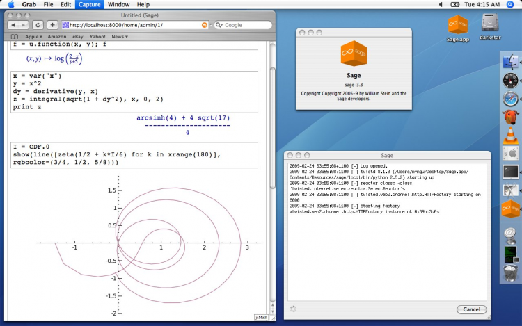 - Подготовка научно-технической документации с использованием редактора формул и возможностью встраивания Sage в документацию формата LaTeX.[4]