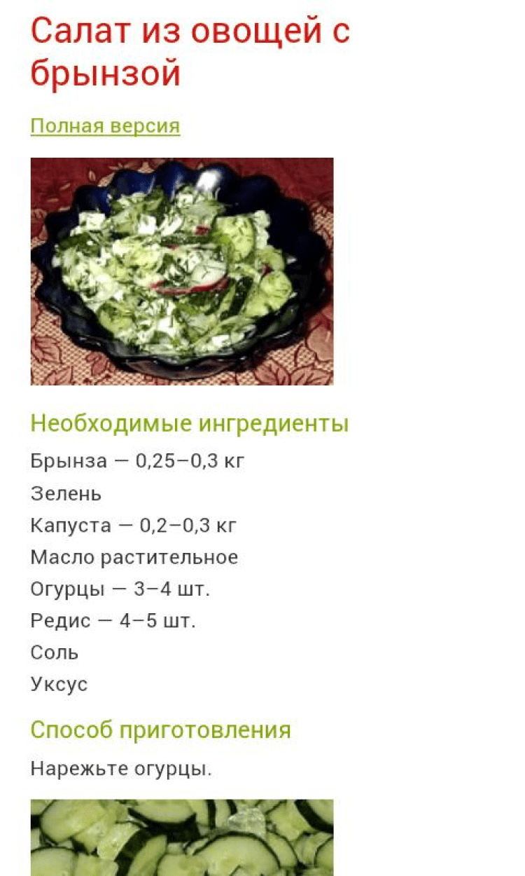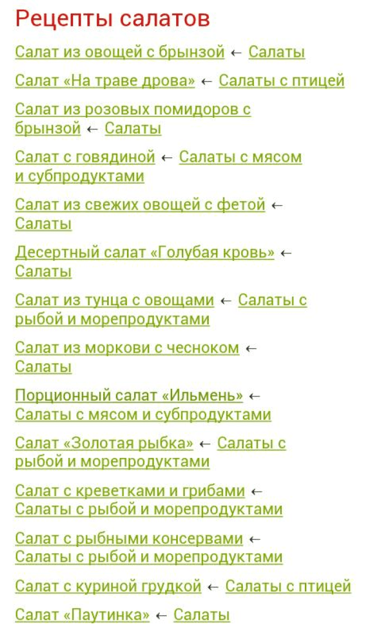 Салаты Кулинарные рецепты Салатов на любой вкус. В этом каталоге представлены разнообразные рецепты Салатов: праздничные, сезонные, салаты на каждый день, рецепты популярных салатов. Каждый Салат сопровождается фотографией и пошаговым фото-рецептом. Все секреты приготовления вкусных и полезных салатов.