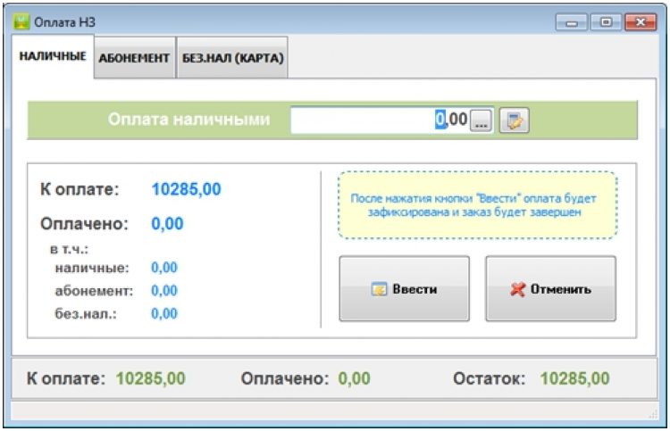 - Учет оплаты - наличными, абонементами, безналичными (картами), с кошелька клиента