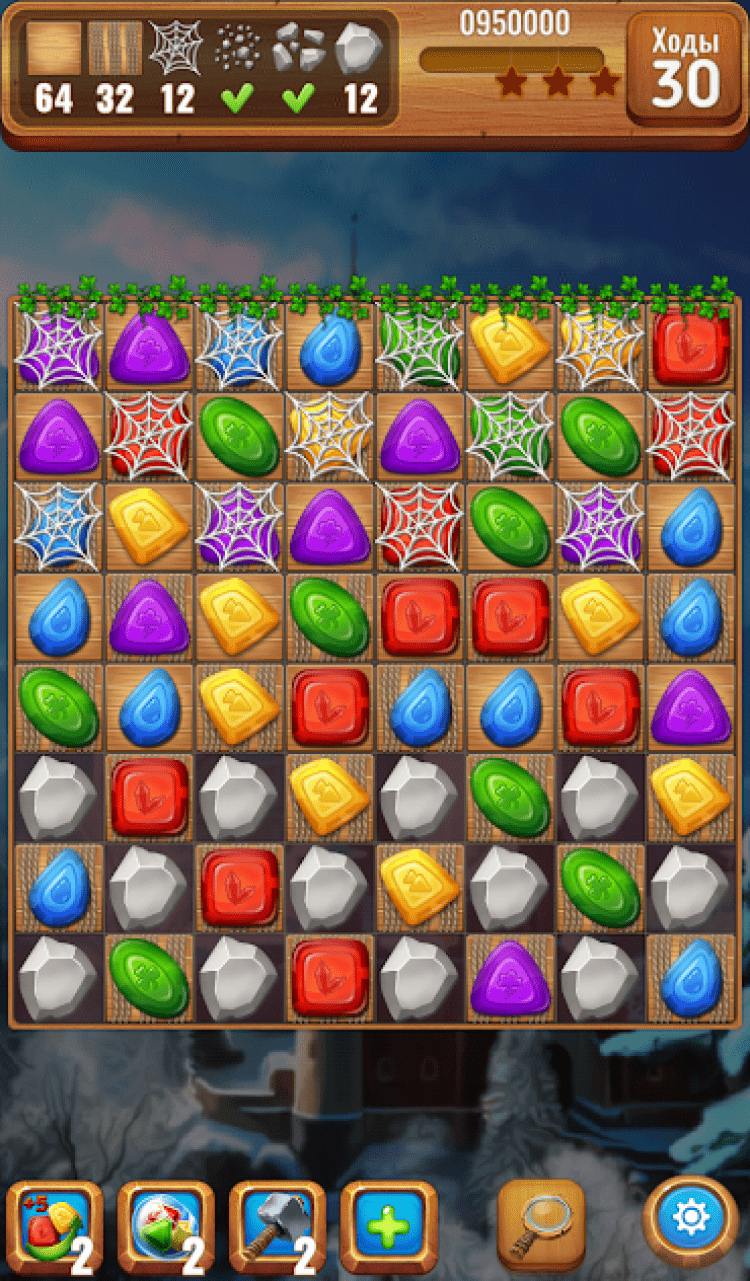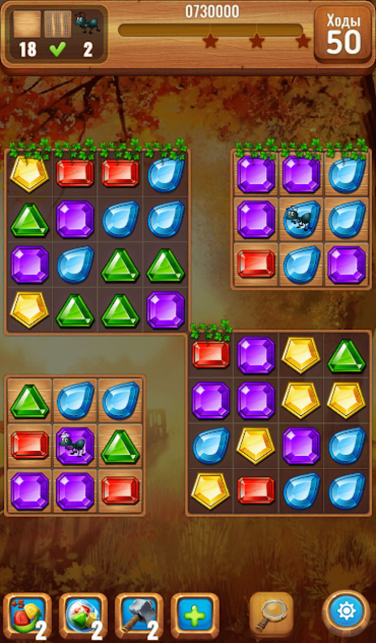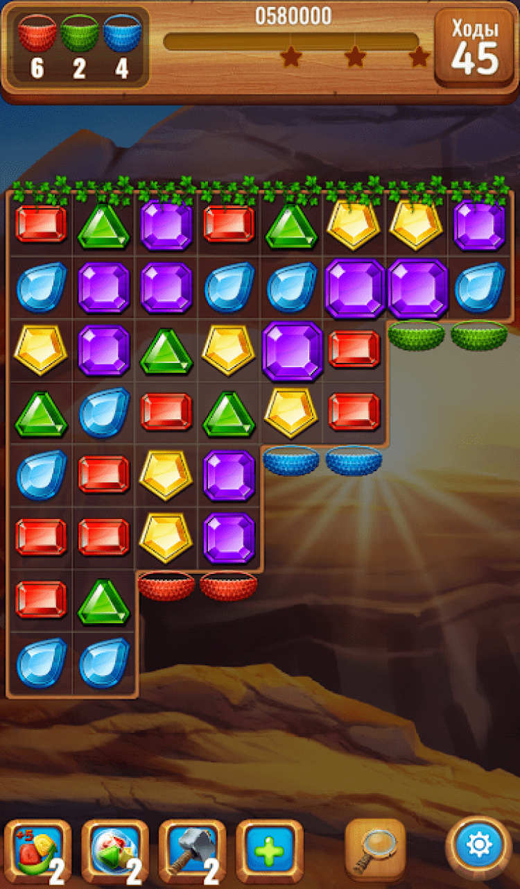 Самоцветы кристаллы Три в ряд — классическая головоломка для мобильных устройств. Собирайте одинаковые самоцветы в группы по 3 или более, чтобы убрать их с игрового поля. Для прохождения каждого уровня, вам необходимо выполнить какую-либо миссию: убрать определённое количество самоцветов того или иного типа. Сделать это необходимо за ограниченное количество ходов. Для этого, вам потребуется задействовать всю свою логику и воображение.