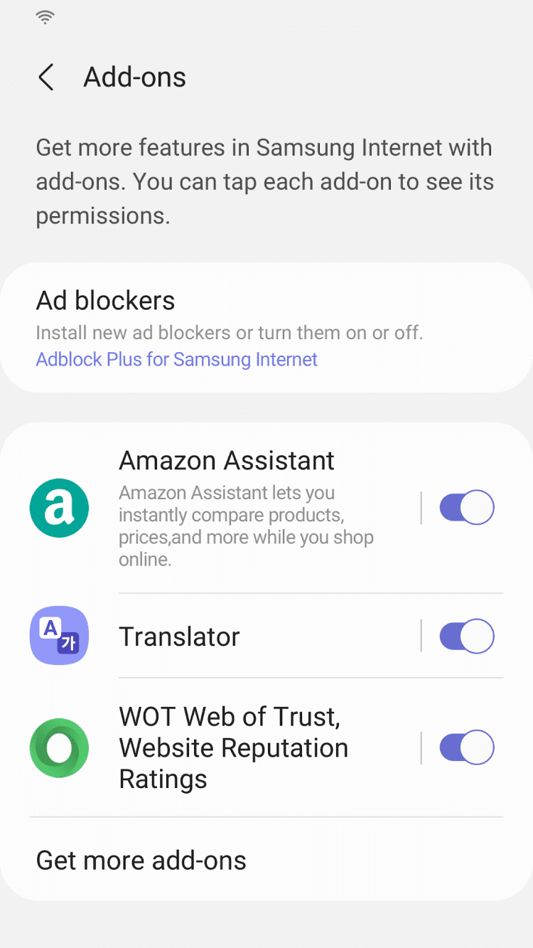 В числе других интересных особенностей программы Samsung Internet Browser стоит отметить поддержку расширений, push-уведомлений от различных сайтов, устройств S Pen, функцию сохранения страниц, встроенный режим для чтения и богатые возможности для улучшения энергосбережения.