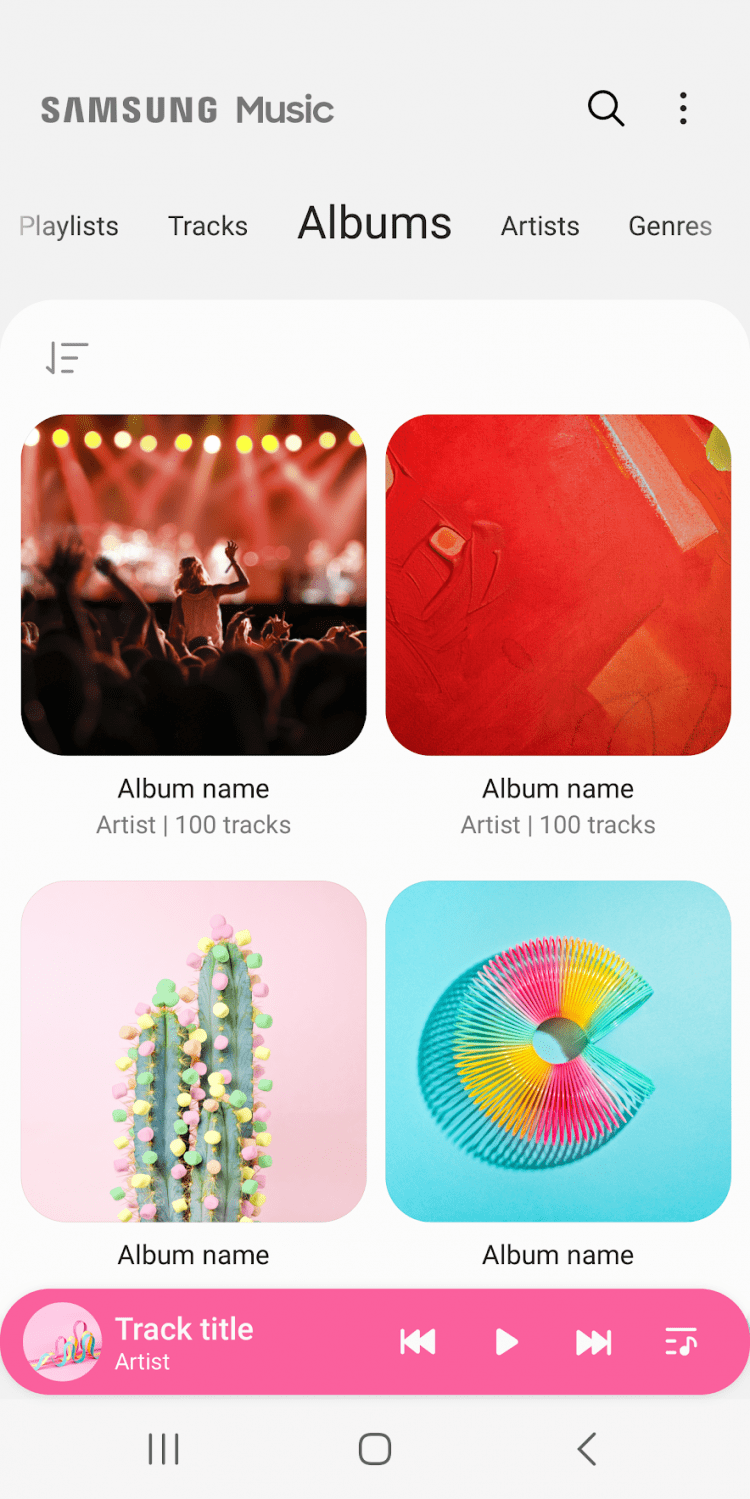 Кроме того, Samsung Music для Android поможет содержать вашу музыкальную библиотеку в идеальном порядке, рассортировав композиции по категориям: по имени, названию альбома, исполнителю, жанру, по названию папки и проч.