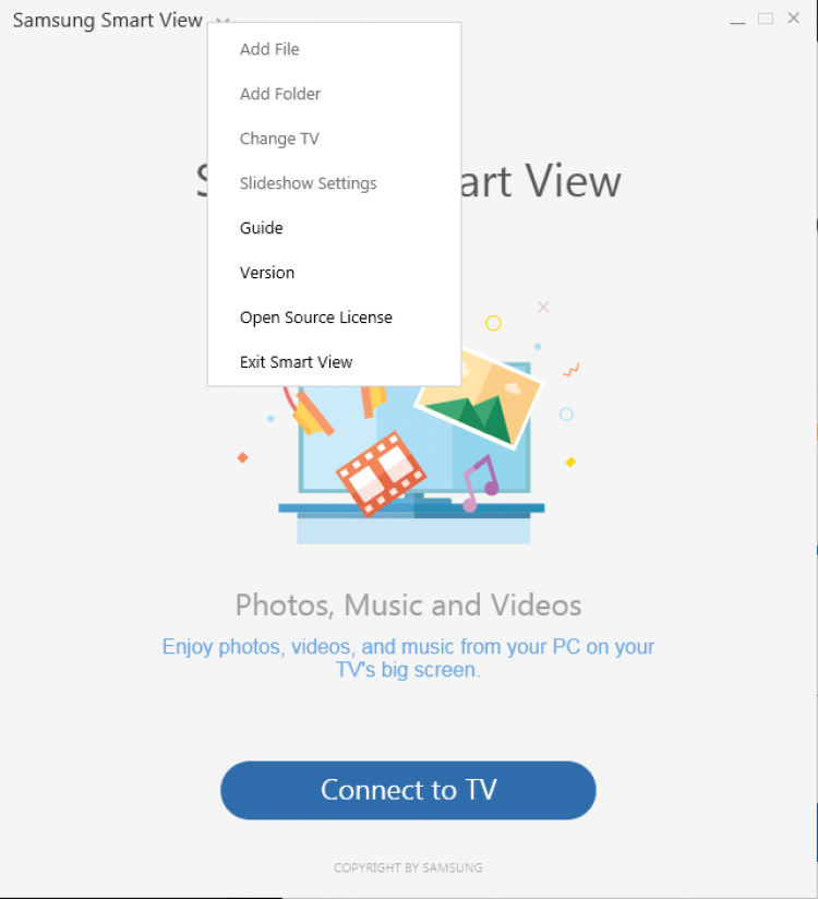 Samsung Smart View - эта программа для владельцев телевизоров Samsung Smart TV. С ее помощью можно смотреть на телевизоре контент прямо с компьютера, и управлять воспроизведением.