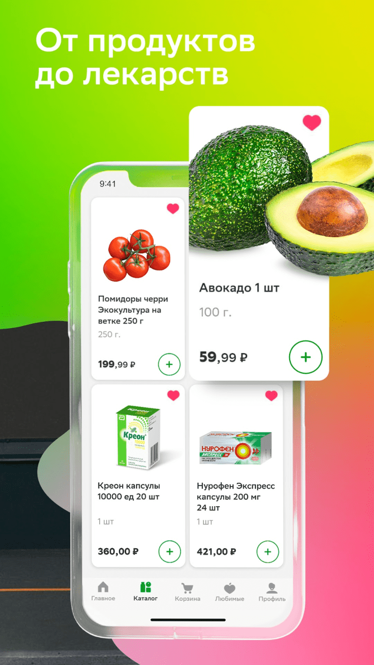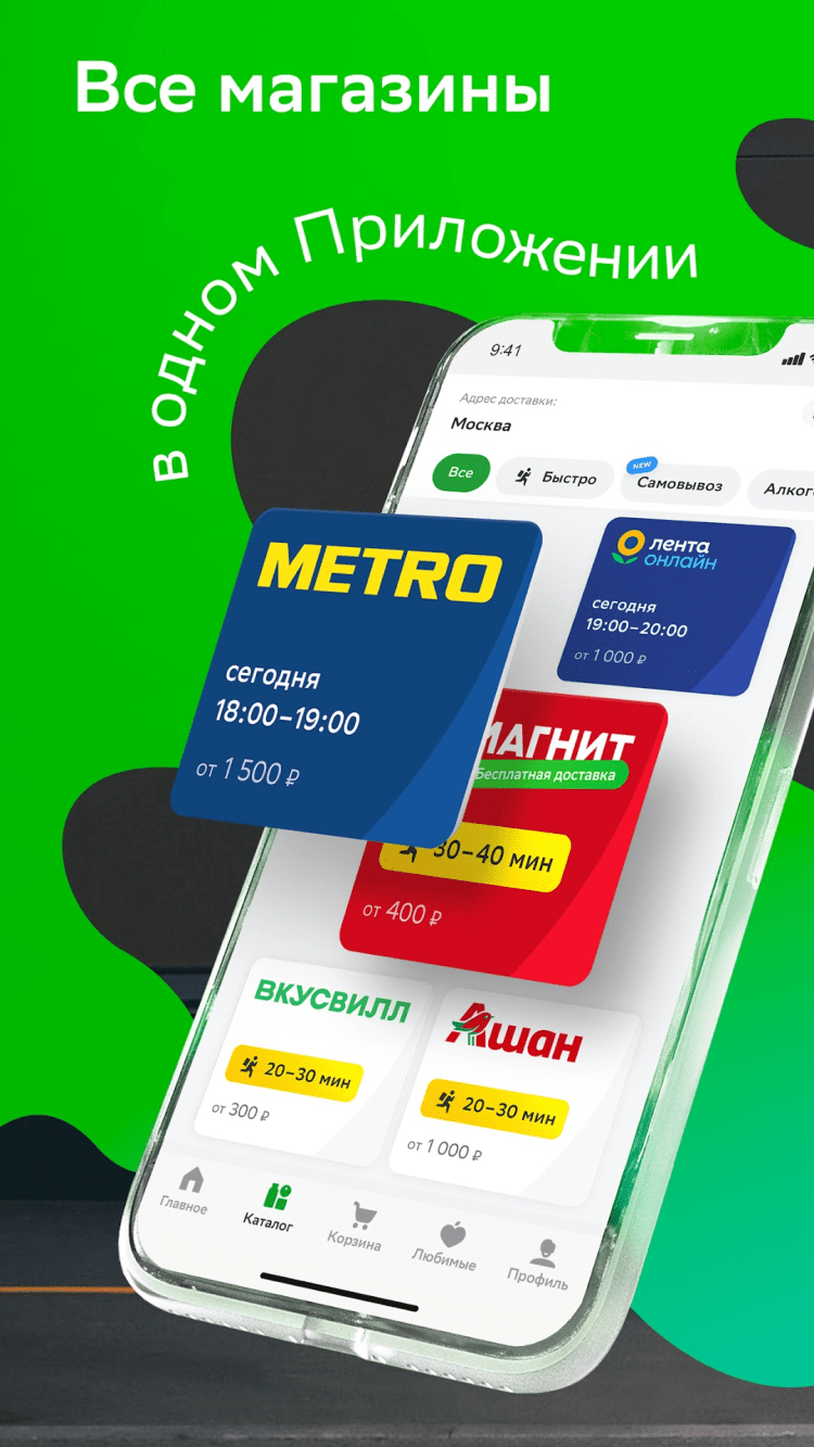 - актуальные каталогу товаров в доступных магазинах;