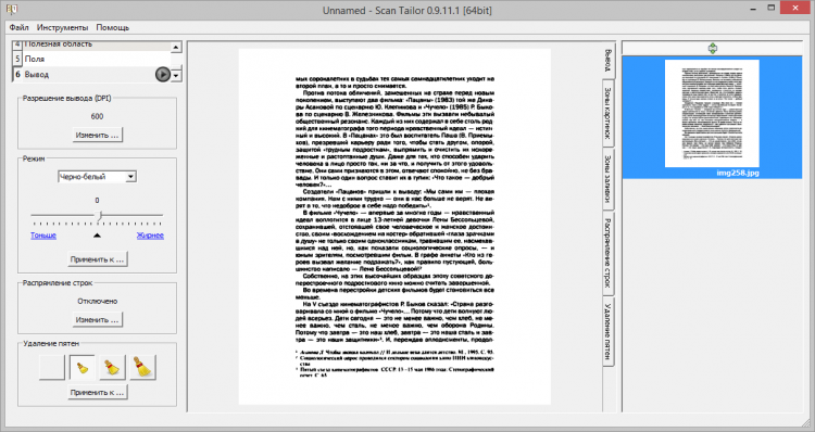 Возможности программы включают: добавление новых полей и разделение станиц на несколько частей, выделение определенной области с наиболее важными данными. Скачать бесплатно Скан Тейлор для компьютера – универсальное решение, когда необходимо добиться максимальной четкости картинки. Сделать это позволят функция компенсации наклона при выравнивании строк в горизонтальном положении, очистка путем установки белого фона с черным текстом, а также отделение от основной части иллюстраций. Большинство процессов автоматизированы, не требуют детальной настройки.