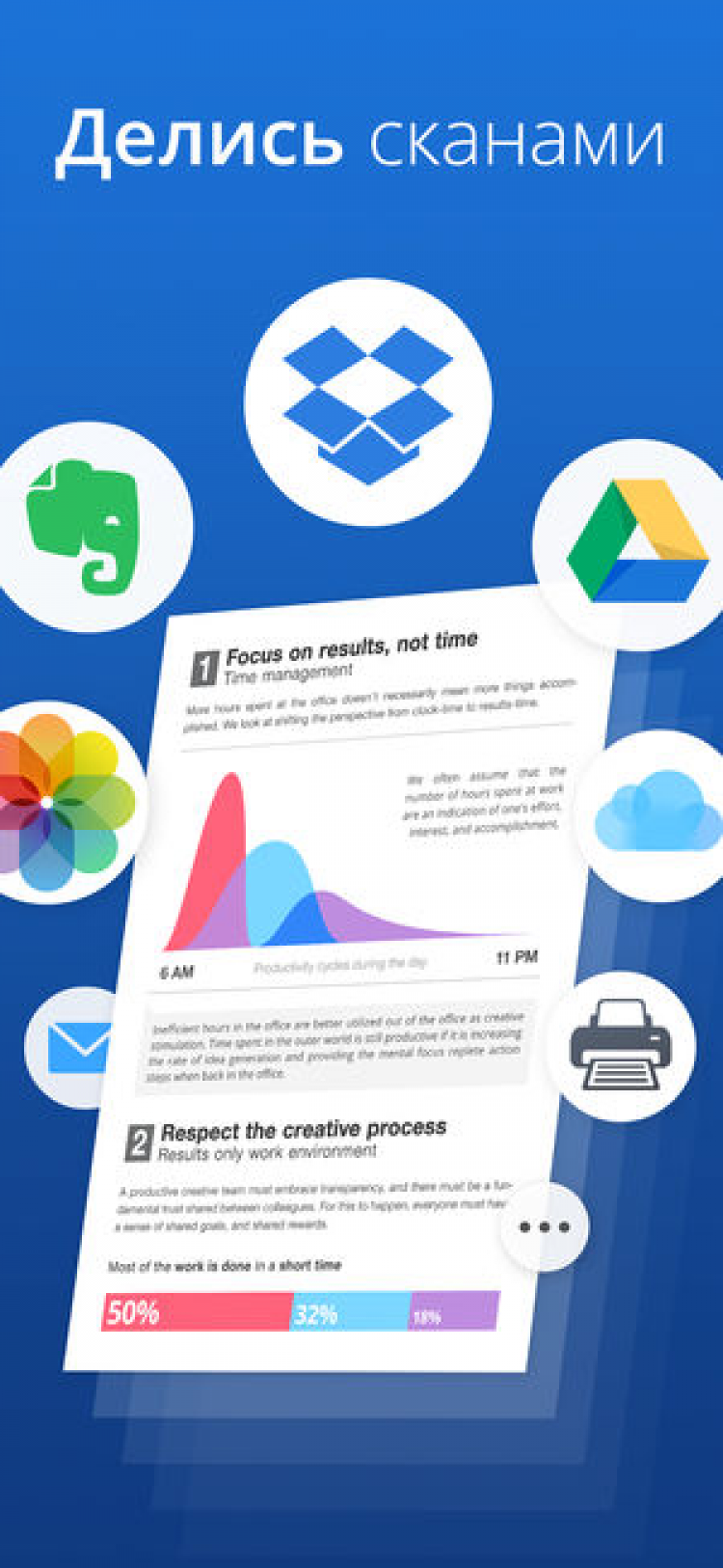 Стоит добавить, что Scanner Pro позволяет настроить автоматическое сохранение сканов на iCloud, для быстрого доступа к ним с любого из ваших устройств. Программа также позволяет сохранять сканы в Dropbox, Evernote, Google Drive, OneDrive, OneNote или любой другой сервис хранения с поддержкой WebDAV.
