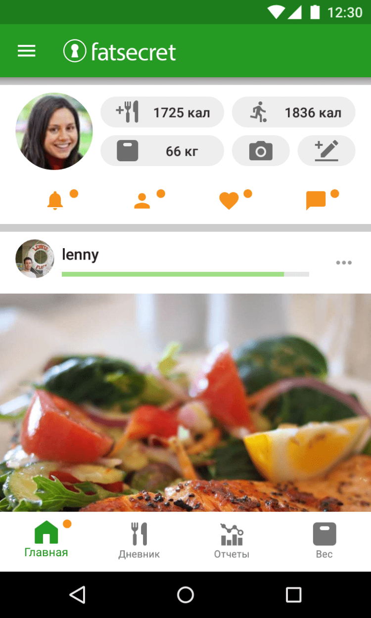 В состав программы входит сканер штрих-кода, позволяющий проще вносить продукты в список, удобный дневник для планирования питания и упражнений, диетический календарь, а также инструмент для отслеживания выполнения поставленных целей по похудению.