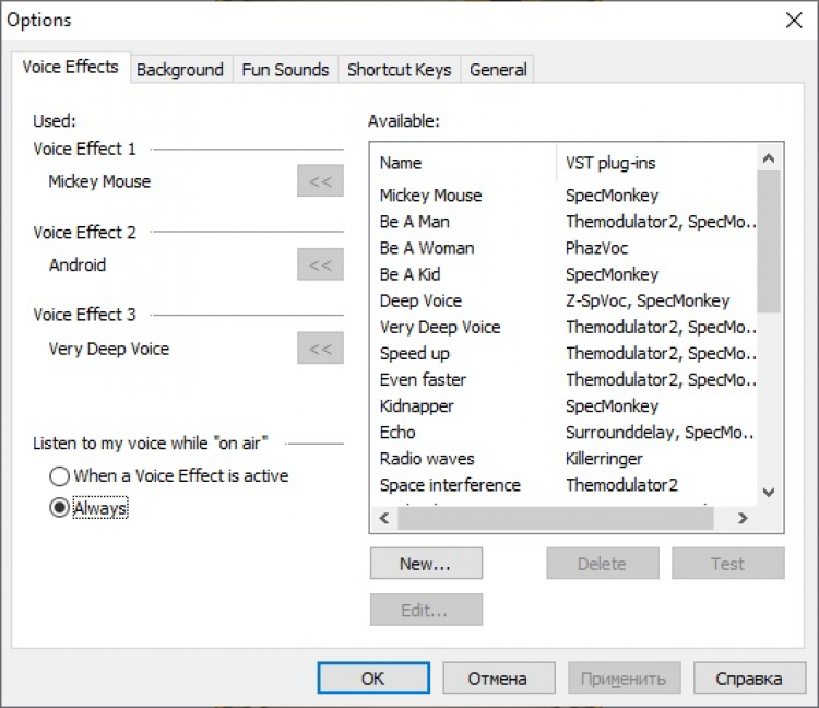 - Более 40 встроенных эффектов для изменения голоса.