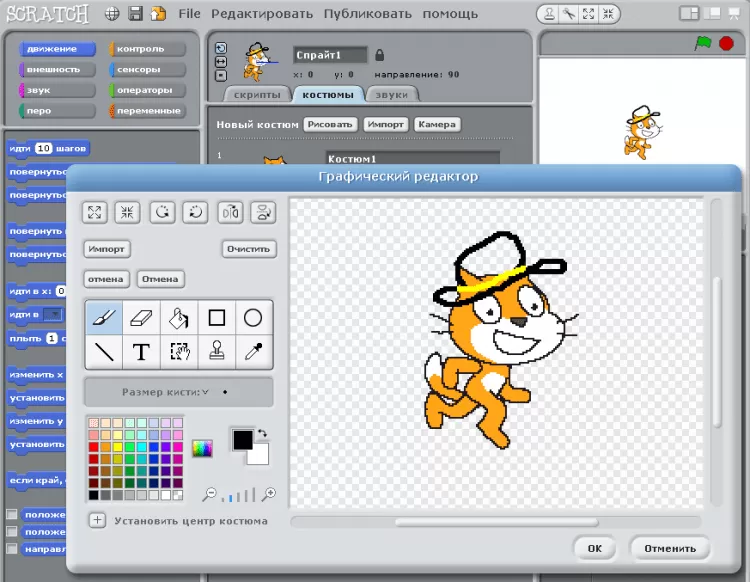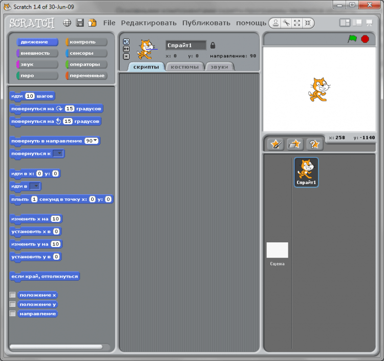 Scratch - это визуальная объектно-ориентированная среда программирования для обучения школьников младших и средних классов.