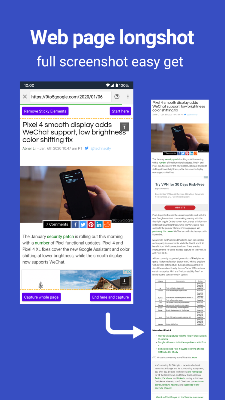 - функция быстрого создания длинного скриншота веб-страницы путем копирования её URL