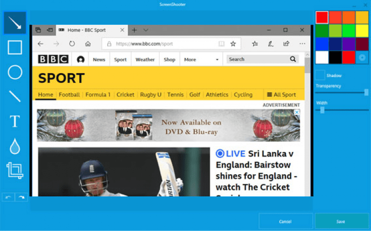 Встроенный редактор позволяет отредактировать изображение перед сохранением или отправкой. Используя его инструменты можно выделить то, что важно, закрасить то, что не нужно, добавить текст и пр.