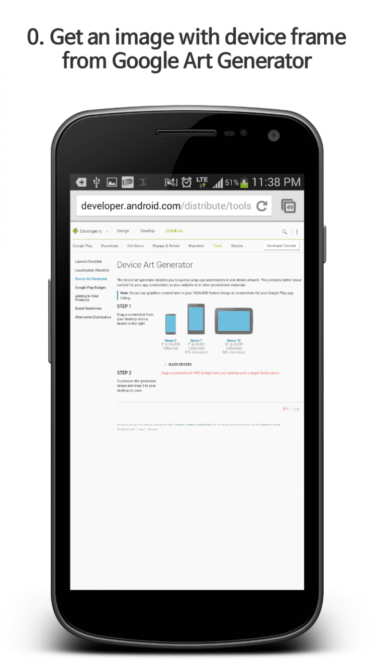 Screenshot Maker for Developer Программа для разработчиков, которая поможет вам создавать скриншноты своих приложений. Для этого, вам необходимо создать изображение своего устройства через сервис Google Art Generator, нажать на экран, а затем задать текст, фон и добавить изображение. После этого, программа позволит произвести захват экрана вашего устройства.
