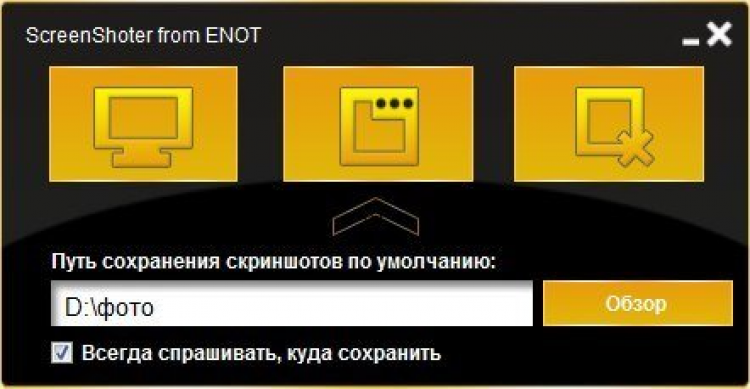 ScreenShoter from ENOT - это бесплатная программа, позволяющая делать скриншоты. Реализована поддержка горячих клавиш для каждого типа скриншота. В настройках программы можно указать путь, куда будут сохраняться созданные картинки, при этом можно поставить галочку "всегда спрашивать, куда сохранять"
