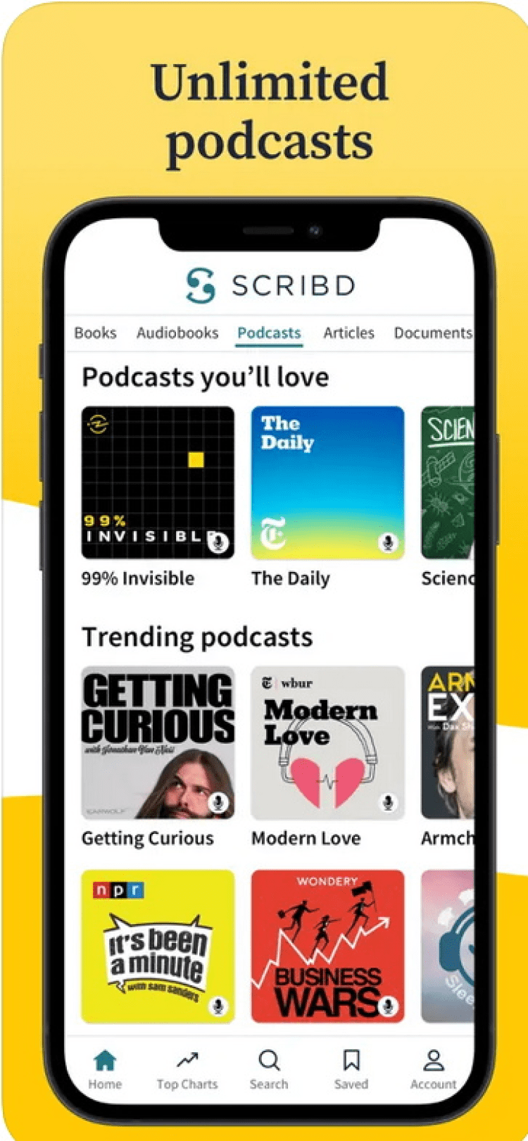 Scribd утолит жажду чтения любого книголюба. Оно предлагает доступ к литературным произведениям, научным и журнальным статьям, всяческим исследовательским отчетам и прочим документам. Да, для доступа ко всему этому необходимо оформить платную подписку, но есть и бесплатный пробный период на 30 дней.