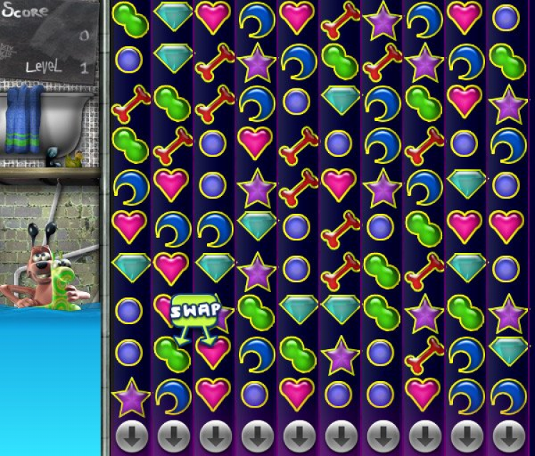 Scruffy Gems Помогите Скруффи выбраться из подвала, объединяя одинаковые предметы в группы, чтобы освободить дорогу. Основные возможности: