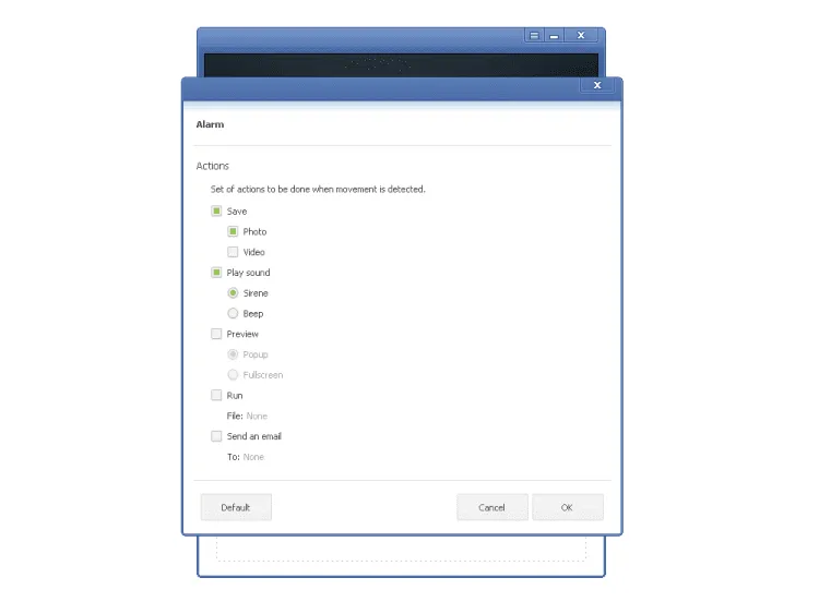 SecurityCam незаметно сидит в системном трее Windows, и начинает запись, как только в кадре начинается какое-либо движение. Программа может записывать видео, или делать снимки. Кроме этого, при обнаружении движения в кадре SecurityCam может воспроизвести выбранные аудио файл. В настройках программы можно установить качество снимков и видео, и ряд других параметров качества.