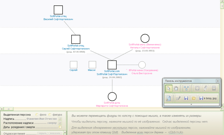 Семейная летопись - это программа позволяет вносить в базу данных членов Вашей семьи и указывать родственные связи между ними. Для каждого из них можно написать биографию, сформировать фотоальбом (или связать с персоной любые другие документы - например, видеофайлы). Имеется возможность построения восходящего и нисходящего генеалогического дерева. Программа имеет продуманный современный интерфейс и очень легка в освоении.