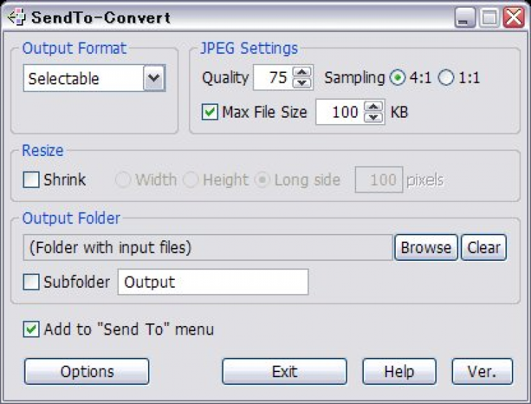SendTo-Convert Portable - это простая в использовании программка, позволяющая конвертировать изображения через команду "Send To" в контекстном меню. Поддерживает форматы BMP, PNG, JPEG и GIF.