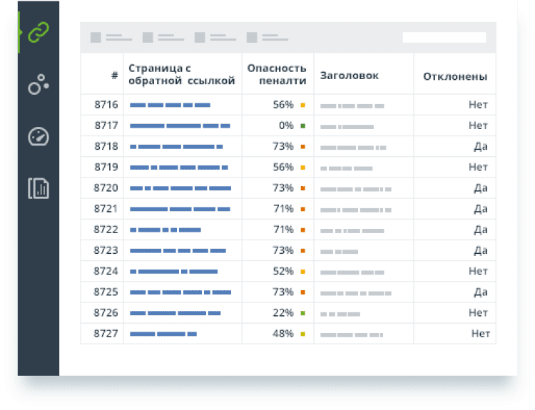 - высокая скорость сбора и обработки данных (сбор информации по сайту занимает 5-10 минут, что в среднем в 5-6 раз быстрее, чем у конкурентов)