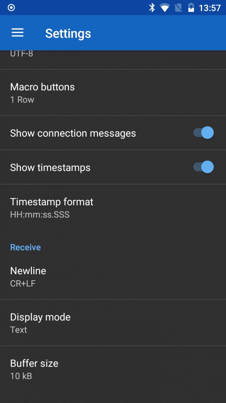 Serial Bluetooth Terminal поддерживает работу с различными версиями Bluetooth: