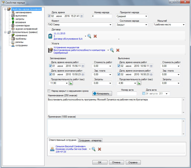 Имеется встроенный модуль определения конфигурации компьютеров, реализован аудит изменений конфигураций. Решаемые задачи: инвентаризация оборудования; приём заявок от пользователей; учёт приоритетов заявок; автоматическое назначение ответственного заявки; Email и SD оповещения об изменениях в комментариях к заявке; учёт статусов заявок; разграничение прав доступа к полям заявки; автоматический расчёт крайнего срока заявки; оценки выполнения заявок; учёт параметров Service Level Agreement и многое другое.