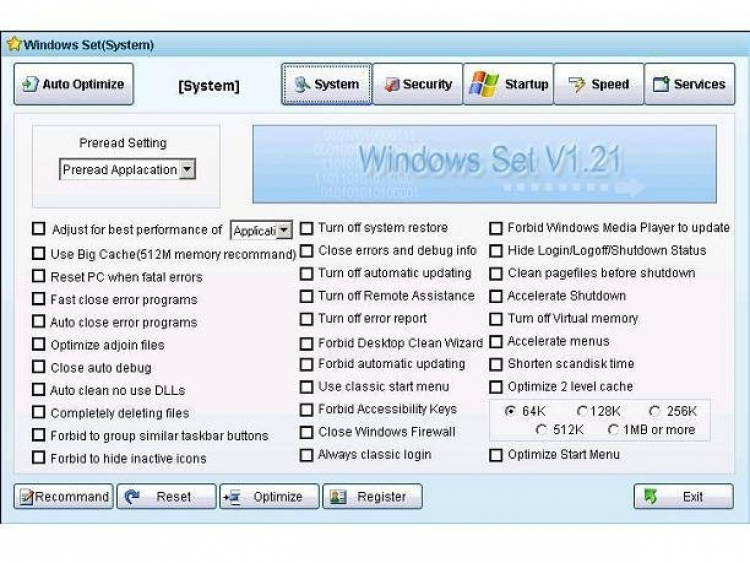 Windows Set Комплексная утилита для настройки, оптимизации и защиты ОС Windows. С ее помощью пользователи могут защитить жестки диски и отдельные папки от несанкционированного доступа, оптимизировать работу ОС, уменьшить время загрузки ОС, управлять сервисами и службами .