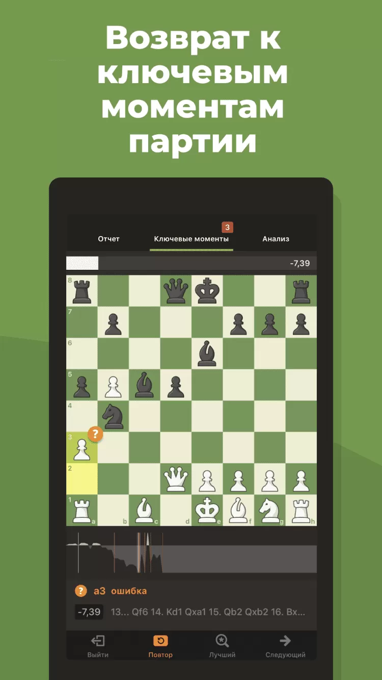 - функция анализа партий для обнаружения ошибок и работы над ними;