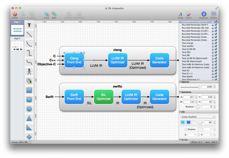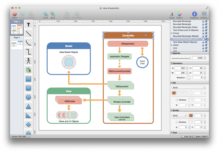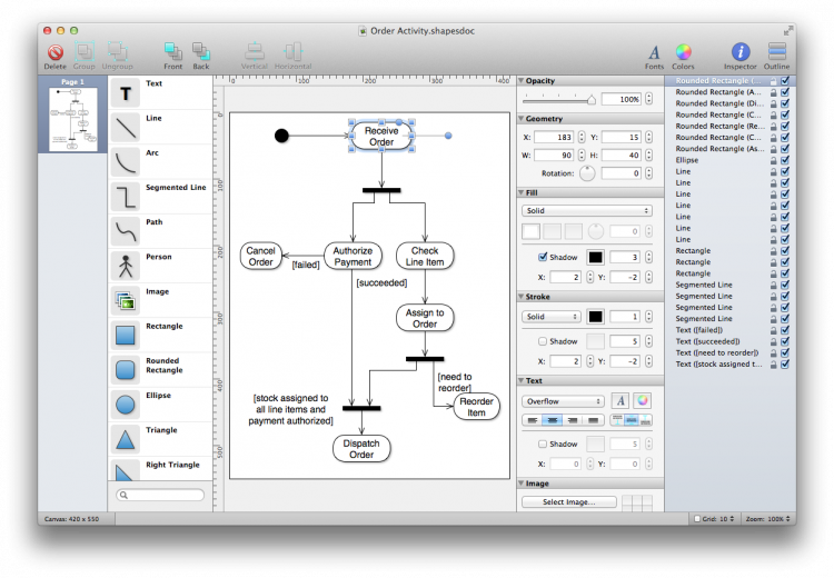 Shapes Простое и удобное приложение для построения диаграм. Shapes обеспечивает пользователя всеми функциями, необходимыми для построения диаграмм. Shapes - это отличный выбор для программистов и веб-дизайнеров.