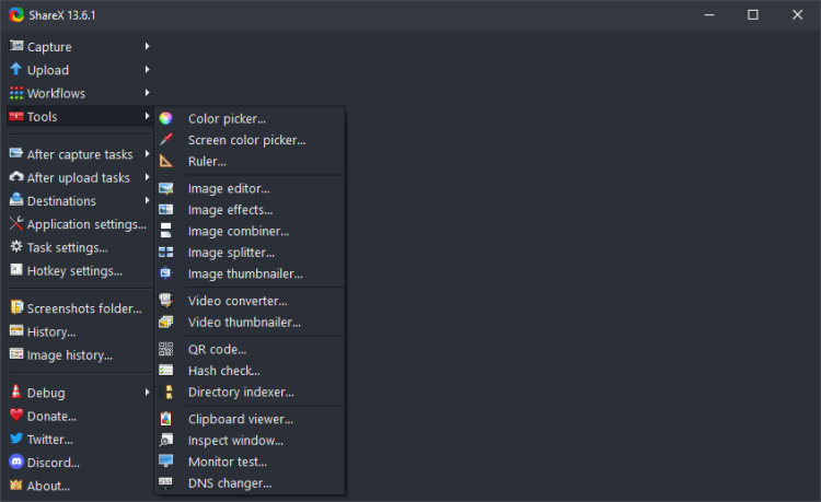 На этом возможности ShareX не заканчиваются. В ней есть еще десяток разных инструментов, которые могут пригодится в той или иной работе. В число этих инструментов входят: