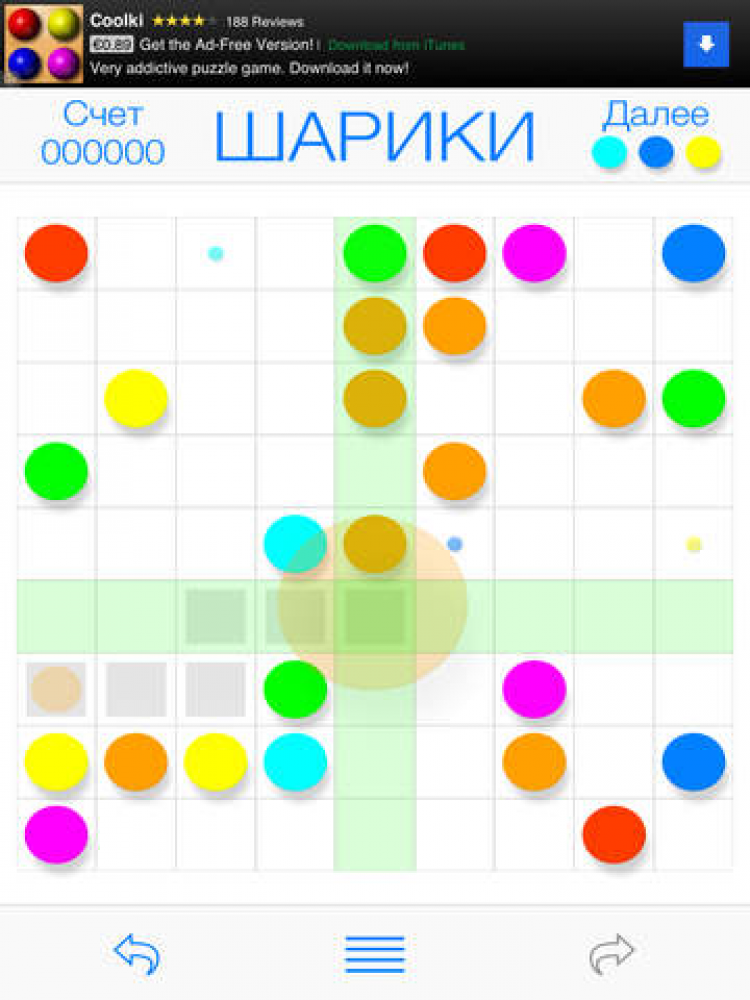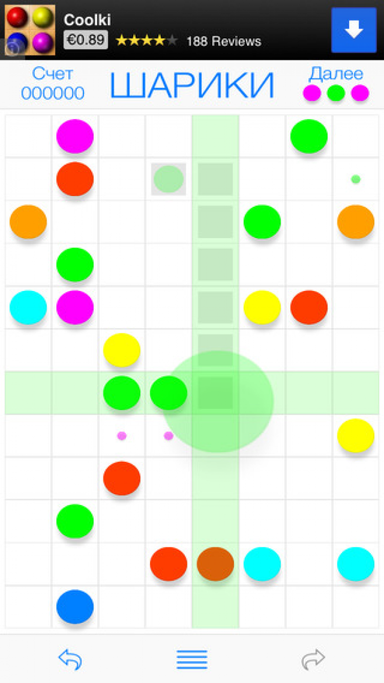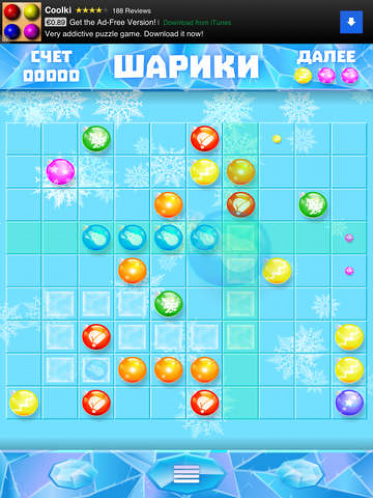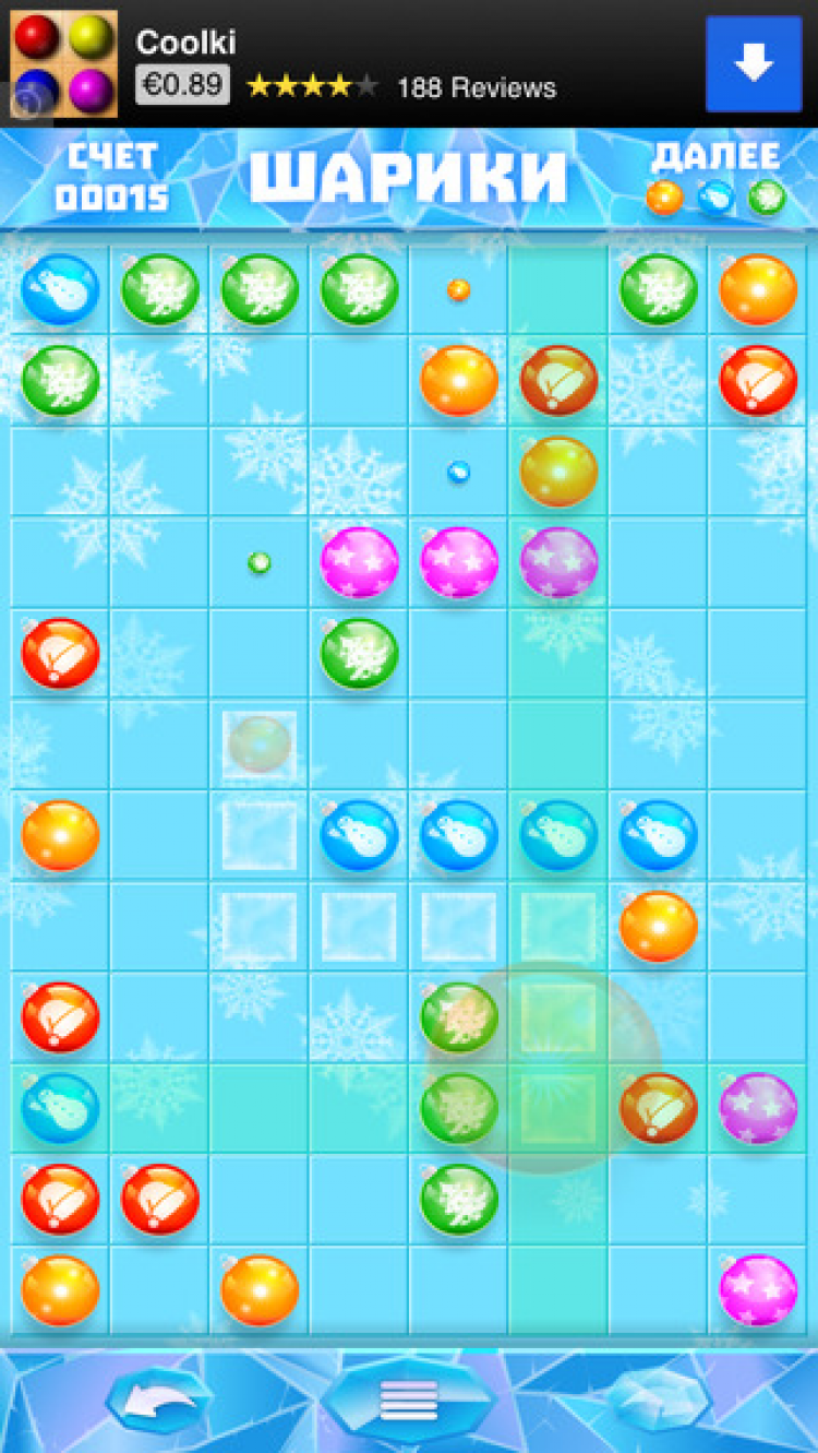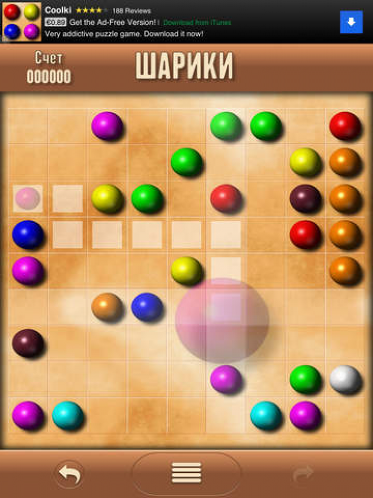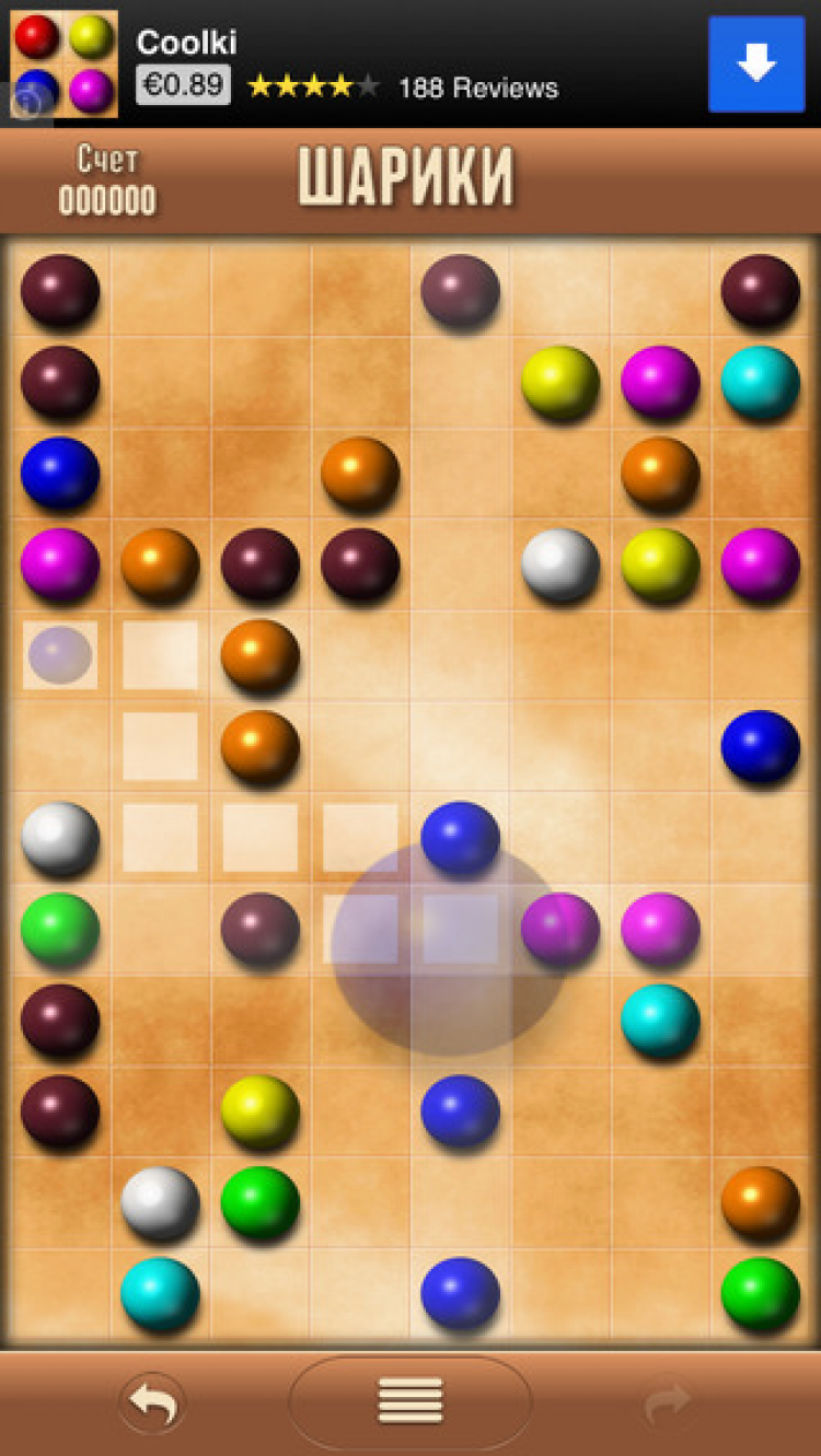 Шарики Занимательная и несложная игра-головоломка. Цель игры - набрать максимальное количество очков. Для этого необходимо перемещать по доске шары и формировать ряды шаров одного цвета. Ряды из пяти и более шаров удаляются с доски, а за каждый удаленный шар начисляется одно очко.
