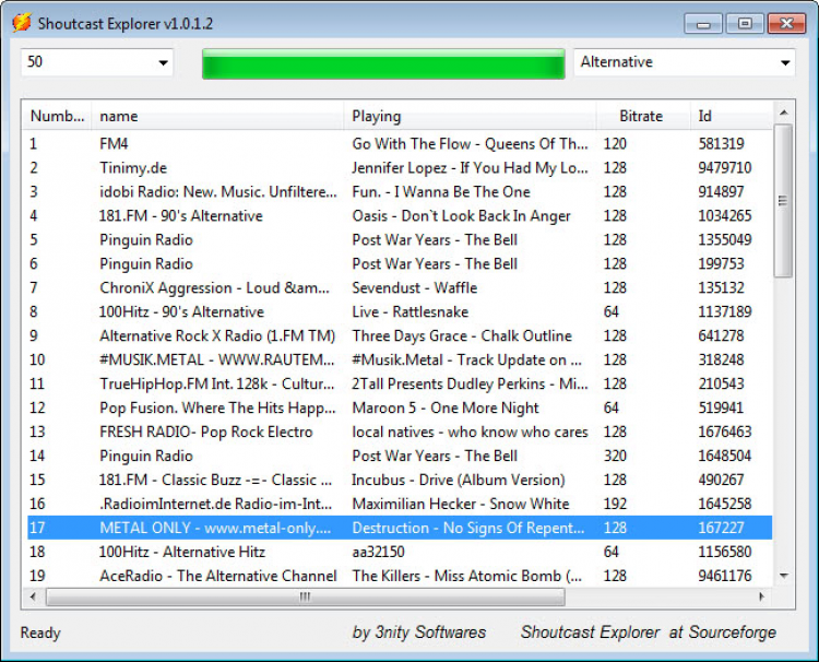 Shoutcast Explorer позволяет выбирать жанр радио станций из выпадающего списка в верхней части окна. В программе представлен огромный выбор жанров: Alternative, Classic Jazz, Classic Country, Techno, Rap, Modern Rock, Punk, Piano, Power Pop, Salsa, Trip Hop, Teen Pop и множество других. В добавок к этому вы можете выбрать количество радиостанций, которое будет загружено (50, 100, 300 и т.д.), обновлять список, записывать эфир станции, сохранять/загружать плейлисты (.PLS) и просматривать техническую информацию о радиостанциях.