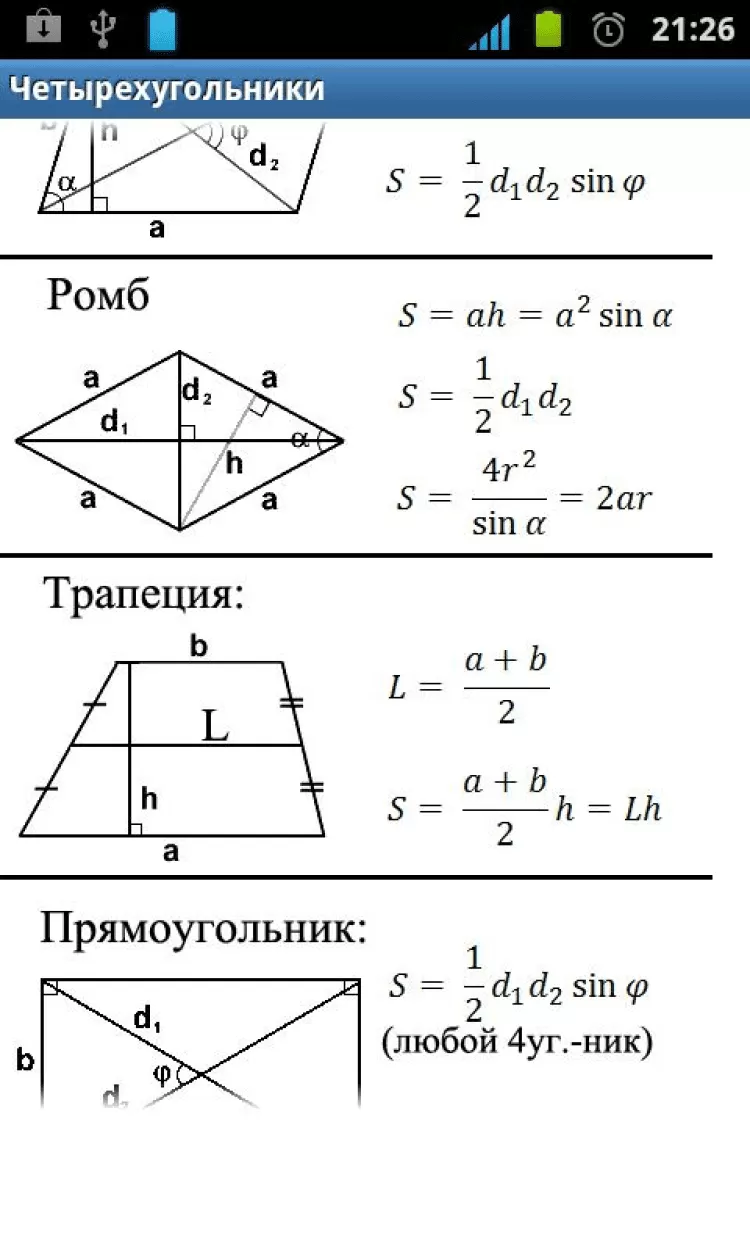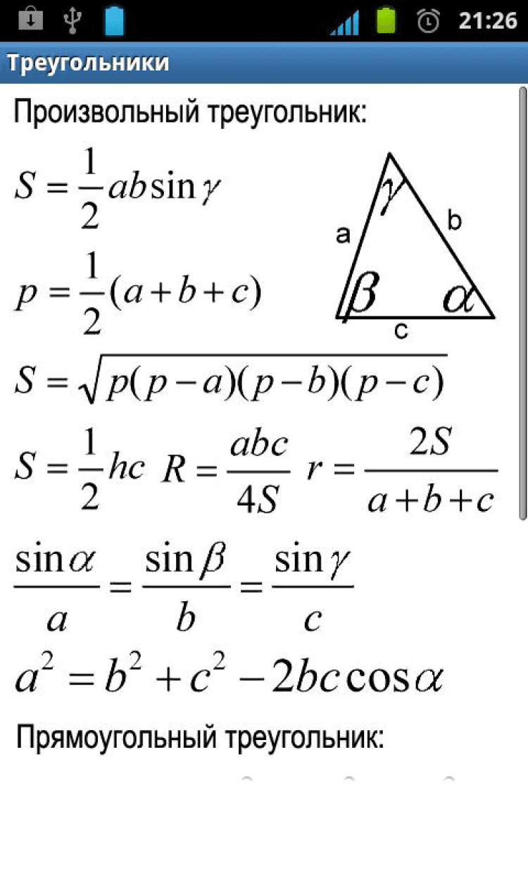 Шпаргалки по геометрии Бесплатный набор шпаргалок по геометрии, привычные русскому глазу, который всегда будет у вас под рукой, на экране мобильного телефона.