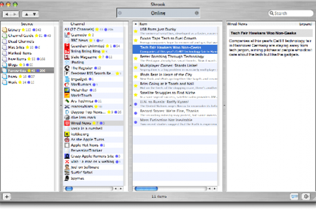 Shrook Программа для чтение новостных лент (RSS и Atom). В Shrook имеется функция синхронизации, поддержка подкастов, "умные" группы и встроенный браузер.
