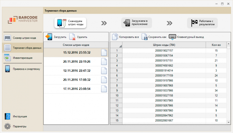 Штрих-код Комбайн Превратите свой телефон в беспроводной сканер штрих-кода, терминал сбора данных и удобный инструмент для проведения инвентаризаций.