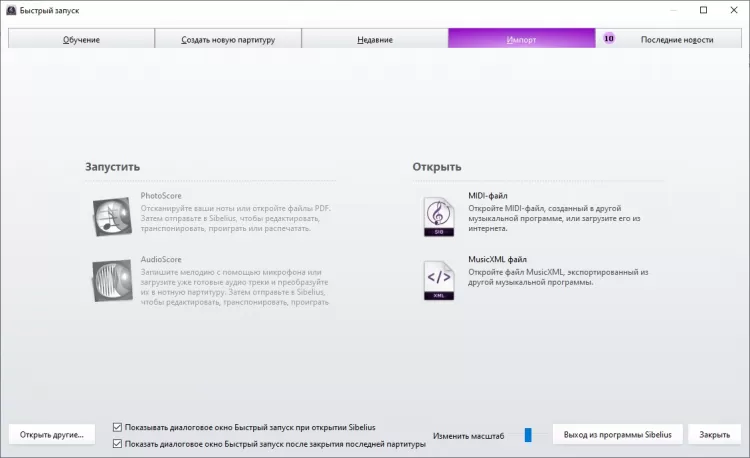 - функция импорта MIDI-файлов, созданных в других приложениях, а также файлов MusicXML.
