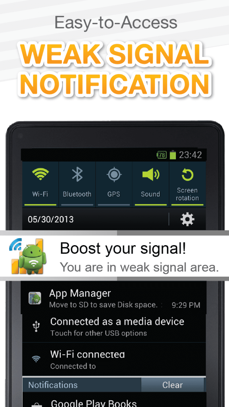 Signal Booster 2X (3G/4G/WIFI) Программа, которая поможет вам всего в одно нажатие перезагрузить точку доступа 3G/4G/LTE или Wi-Fi, что поможет заново подключиться к источнику сигнала и, вероятнее всего, улучшить качество сигнала. Если вы находитесь в месте со слабым приемом сигнала, программа так же уведомит вас об этом.