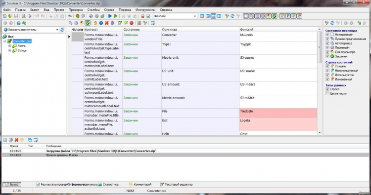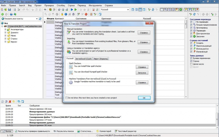 Sisulizer - это мощный инструмент для локализации программного обеспечения. Sisulizer умеет работать в средах C++ Builder, Delphi, Visual C++, Visual Basic, jаvа, или с двоичными файлами Windows и XLIFF. Помимо этого, с помощью этой программы можно редактировать файлы в формате HTML и XML, а также отбирать текст из текстовых файлов и баз данных.